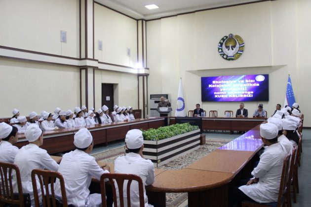 An event titled “Ecology and Us: Together We Create the Future!” was organized at Andijan State Medical Institute. The event was attended by the head of the Department of Ecology, Environmental Protection, and Climate Change of the Andijan region, acting head X. Maksumov, department head Sh. Pattaev, the first vice-rector for Youth Affairs and Spiritual-Educational Work of Andijan State Medical Institute S. Salohiddinov, acting vice-rector for Educational Affairs Z. Mamasoliev, dean of the Faculty of Pharmacy K. Yulchiev, and heads of various departments.